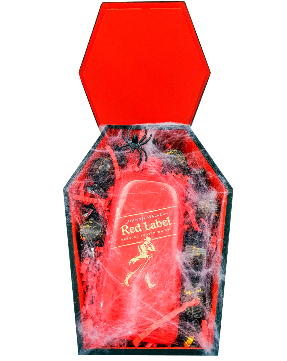 El más elegante regalo de halloween para sorprender este mes de monstruos. Botella de 200ml del mejor whisky acompañado de delicosos chocolates con contenido especial, decorado terrorificamente. Puedes cambiar por whatsapp la frase por máximo 3 palabras